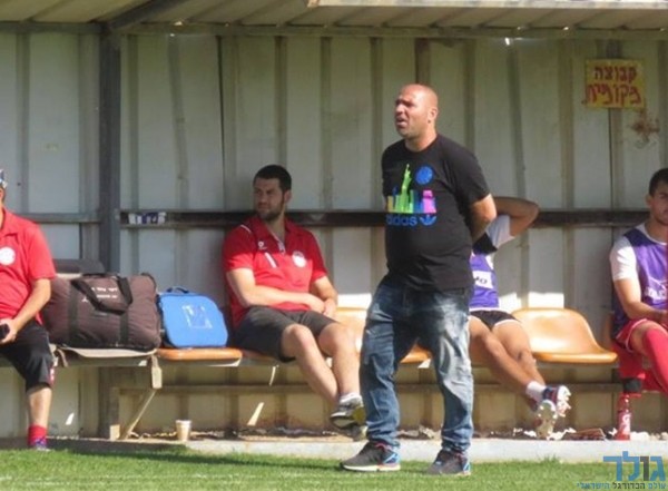 מומו ניסטל, מכוון את הקבוצה מהיציע. (אלעד שומינוב)