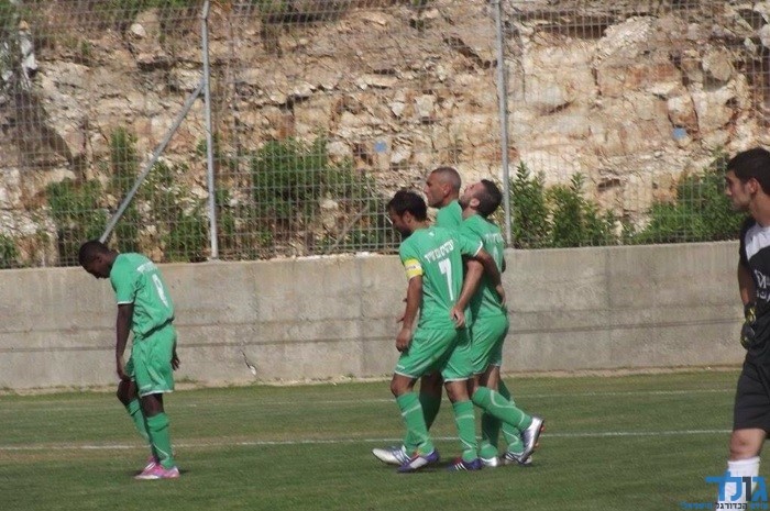 שחקני דליה חוגגים בסיום המשחק מול א.א.פאחם (עלאא בדארנה)