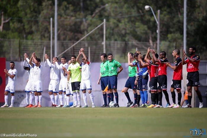שחקני כפר קאסם מודים לקהל על התמיכה הנפלאה (רמי גרידיש)