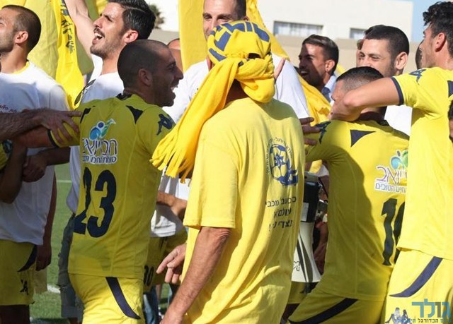שחקני קרית גת בימים טובים יותר, חוגגים את עלייתם לליגה הלאומית. (צילום: ארז נעמן)