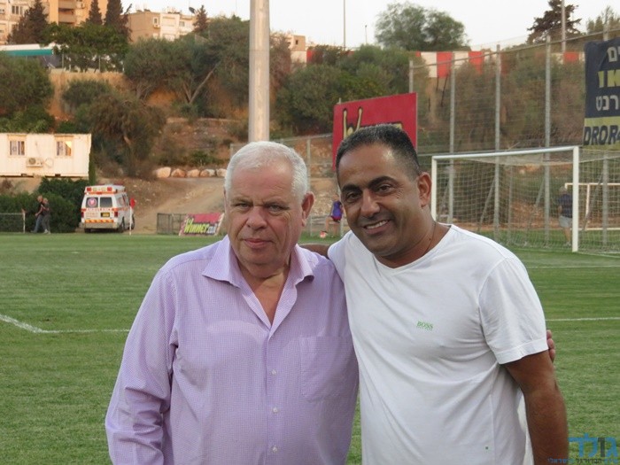 יו"ר הפועל נצרת עלית גיל ברעם וראש עיריית נצרת עלית רונן פלוט. (צילום: אלעד שומינוב)