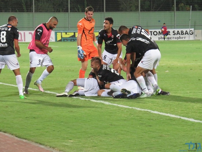 שחקני קטמון בתמונה חוגגים את השער בדקה ה-88 שבסופו של דבר לא הפך לשער הניצחון. (צילום: אלעד שומינוב)