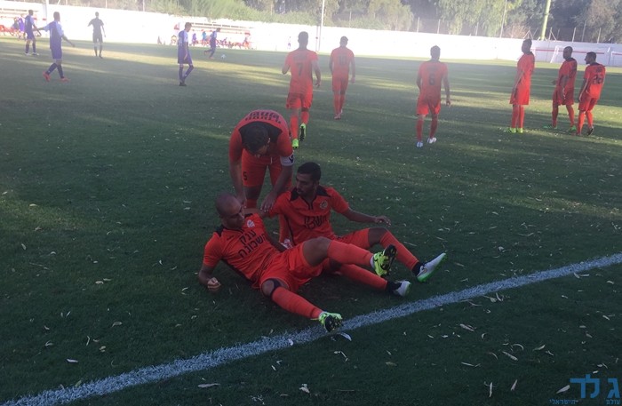 שלום אדרי ולאונרדו אמסיס חוגגים את שער הניצחון (אבייתר ברק)