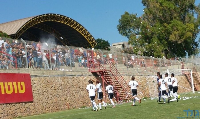 איכסל חוגגת עם אוהדיה שער מהיר (צילום: חאלד דראוושה)