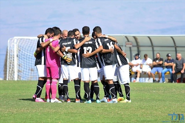 שחקני מגדל העמק לפני פתיחת המשחק (עודד חסין)
