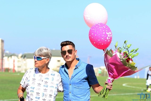 עמית דהאן מקבל את זר הפרחים מאוהדי טבריה (עודד חסין)