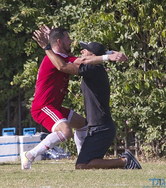 אבי מלכה חוגג יחד עם מאמנו היימן חלאיילה (יואל דה וריס)