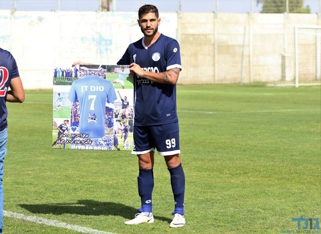 תום דן בטקס שנערך לכבודו לפני המשחק מול בית שאן (עודד חסין)