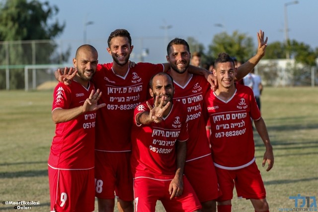 שחקני נס ציונה חוגגים מול כפר קאסם (רמי גרידיש)