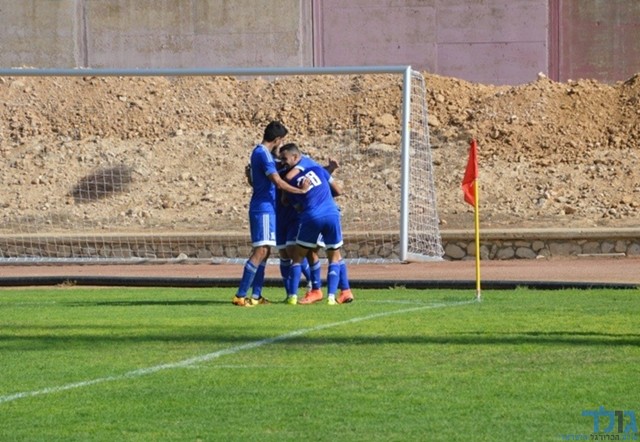 שחקני כפר שלם חוגגים שער גדול של עמוס. (צילום: שי רוטברט)