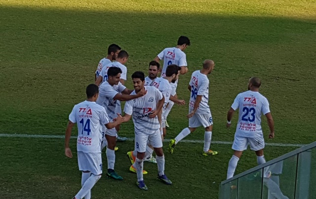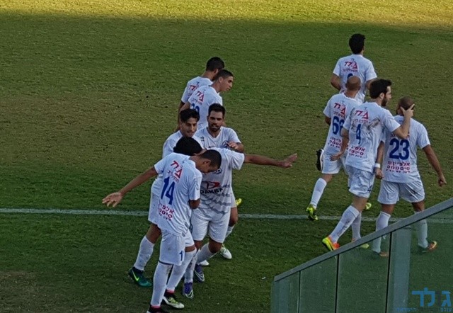 שחקני יפו חוגגים את השער הראשון של מדר (אוהד רון)