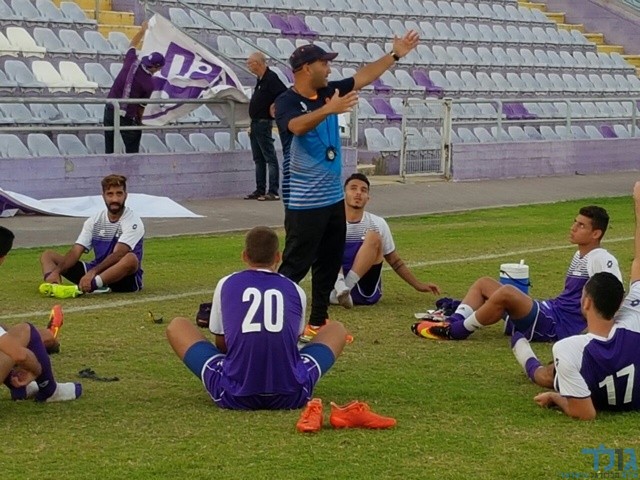סירוטקין מנסה להסביר לשחקניו את שיטת המשחק שלו (אוהד רון)