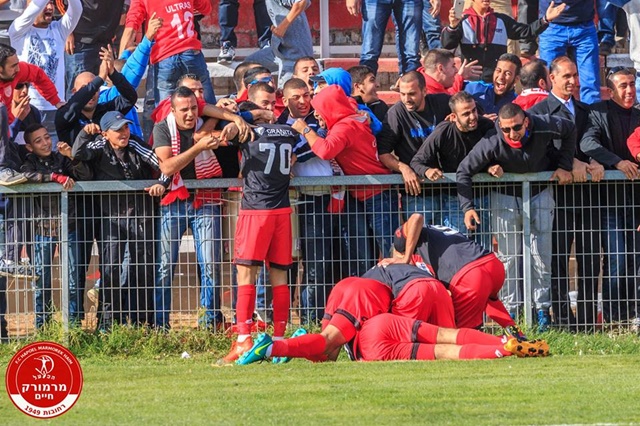 שחקני כפר קאסם חוגגים ניצחון יוקרתי (יוסי סוריק)