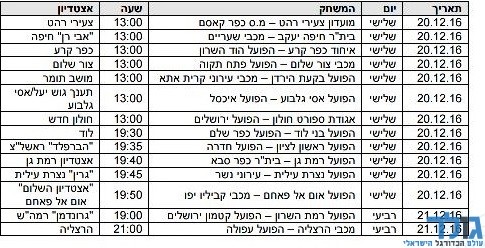 מועדי משחקי גביע המדינה לסיבוב ז':