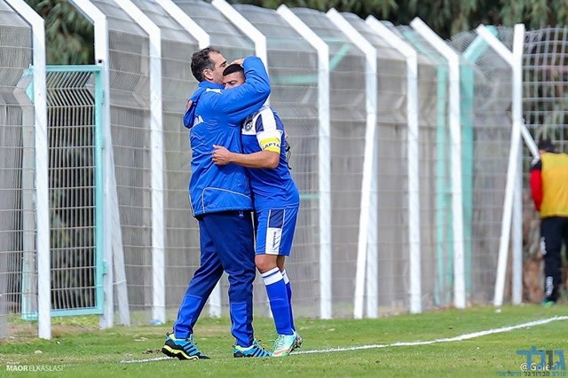 יוחאי כהן כובש ורץ לחגוג עם מאמנו (מאור אלקסלסי)