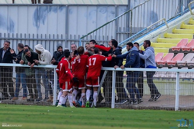 שחקני איכסל חוגגים את השוויון עם אוהדיהם (מאור אלקסלסי)