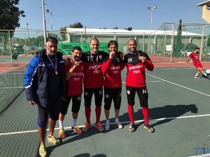 שחקני הפועל הרצליה שעושים תוצאות טובות, חוגגים גם על מגרש הטניס....