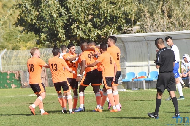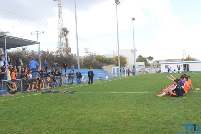 שחקני מלאכי חוגגים לאחר הניצחון החשוב ביבנה (לאה גורליק, המקור קריית מלאכי)