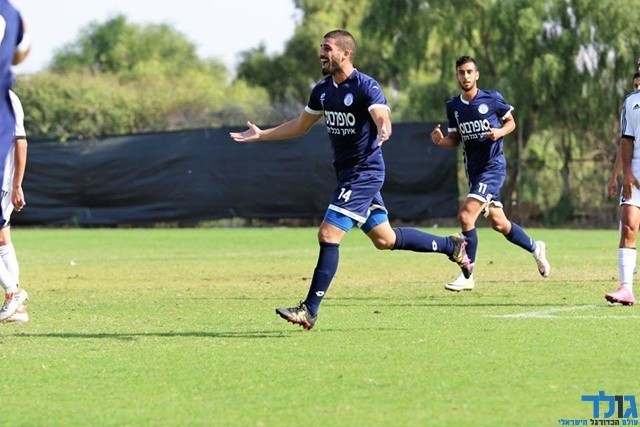 מומו ניסטל חוגג בניצחון מול הרצליה (תום אונגר)