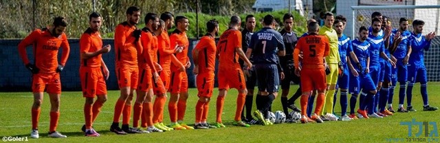 שחקני שתי הקבוצות לפני פתיחת המשחק (מני בן ארי)