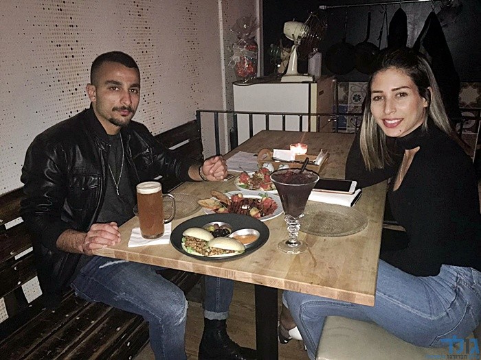 שחקן הסיבוב של ליגה ב' דרום א', חן לוי ובת זוגתו, ניהנים מהארוחה הזוגית שקיבלו במסעדת השף.