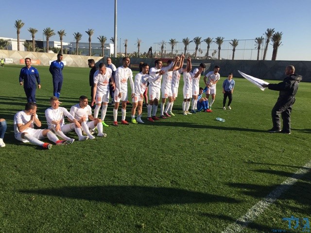 שחקני נס ציונה חוגגים ניצחון יקר (אבייתר ברק)