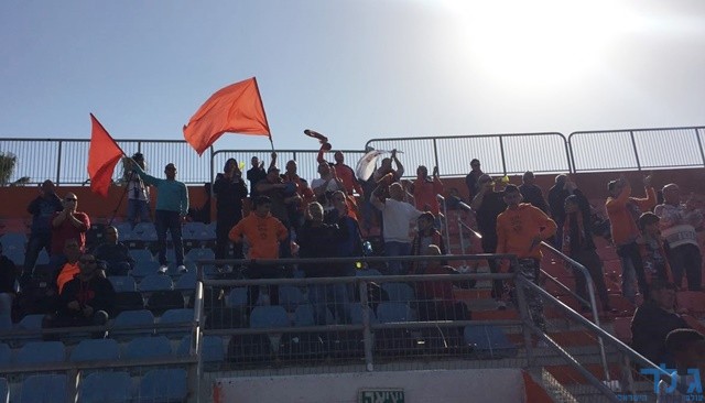 אוהדי יפו מנסים להבין מה לא עובד בסיום המשחק (אבייתר ברק)