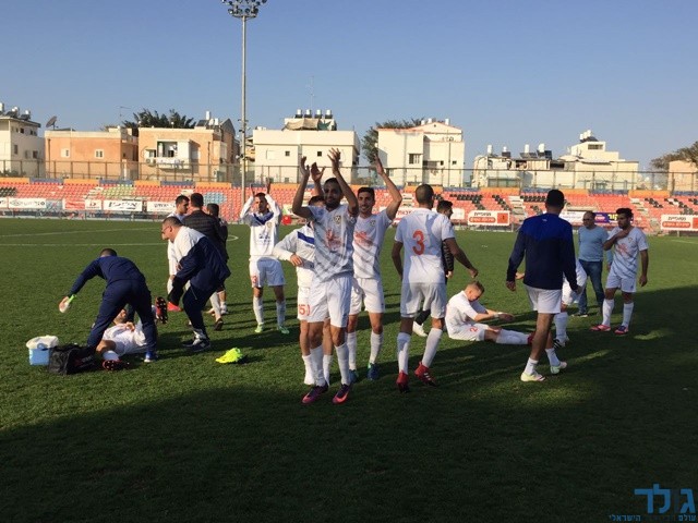 שחקני נס ציונה חוגגים בסיום (אבייתר ברק)
