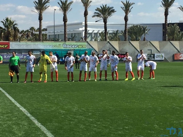 שחקני נס ציונה מודים לקהל לפני פתיחת המשחק (אבייתר ברק)