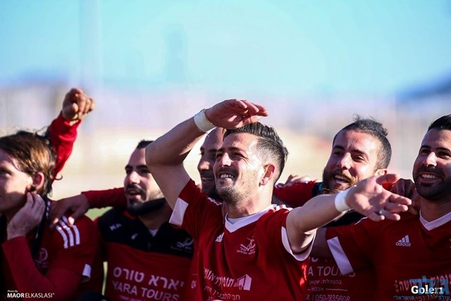 אבי מלכה וחבריו חוגגים עוד ניצחון דרמטי (מאור אלקסלסי)