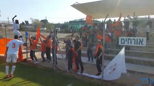שחקני נס ציונה חוגגים עם הקהל הכתום שהגיע לתמוך