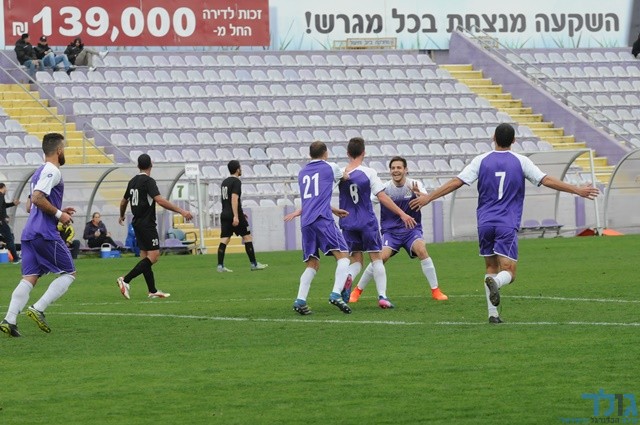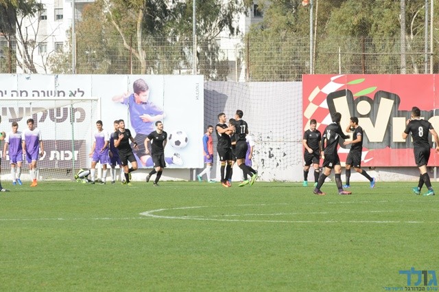עילאי סלומון כובש בנגיעה הראשונה וחוגג עם חבריו (איתן ידגר)
