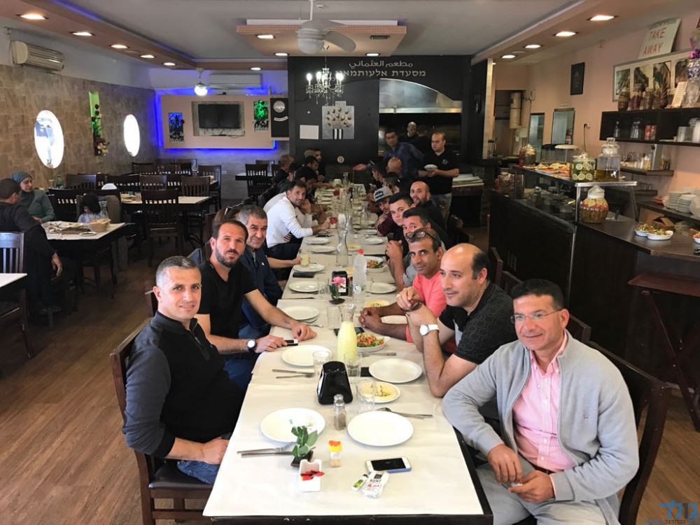 שחקני כפר כנא חוגגים לאחר המשחק בארוחה עם המשפחות