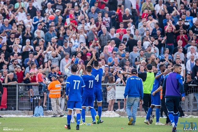 שחקני חדרה חוגגים תיקו שכולו ניצחון בדרך לליגה הלאומית (מאור אלקסלסי)