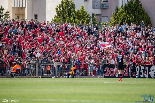 שני הקהלים יצרו אווירה נהדרת במגרש בחדרה (מאור אלקסלסי)
