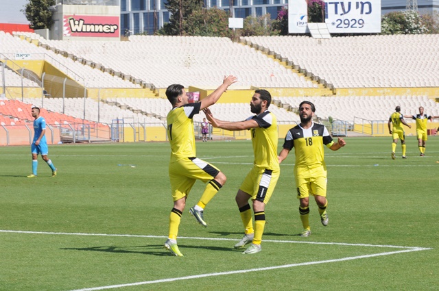 שחקני כפ"ס חוגגים ניצחון ששווה הישארות בליגה. צילום: איתן ידגר