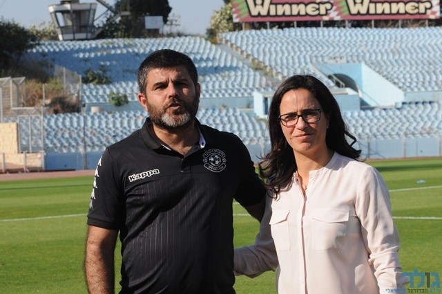 יעקב טל מאמנה של אור יהודה יחד עם ליאת שוחט, ראש עיריית אור יהודה (איתן ידגר)