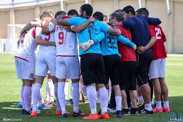 שחקני שתי הקבוצות לפני פתיחת המשחק (מאור אלקסלסי)