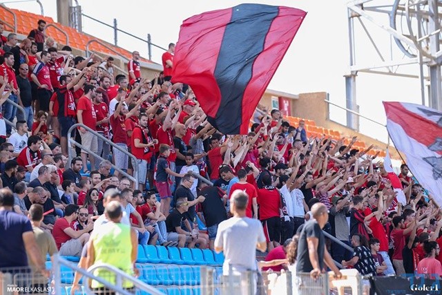 אוהדי שתי הקבוצות לפני המשחק מעודדים את שחקניהם (מאור אלקסלסי)