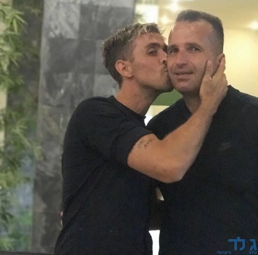 איציק בן סולומון מנשק את קובי סוויסה לאחר הניצחון הראשון בחופים