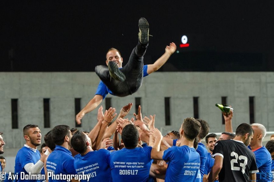 אורן קריספין מונף באוויר, אשתקד כמאמן קבוצת הנוער (דף הפייסבוק של הפועל פ"ת)
