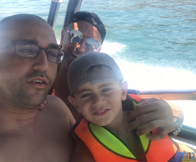 כתבנו הבכיר בצפון רועי סימוני ובנו ינאי סימוני - דוד אמסלם מביט מאחור יחד איתם בסירה בכנרת.