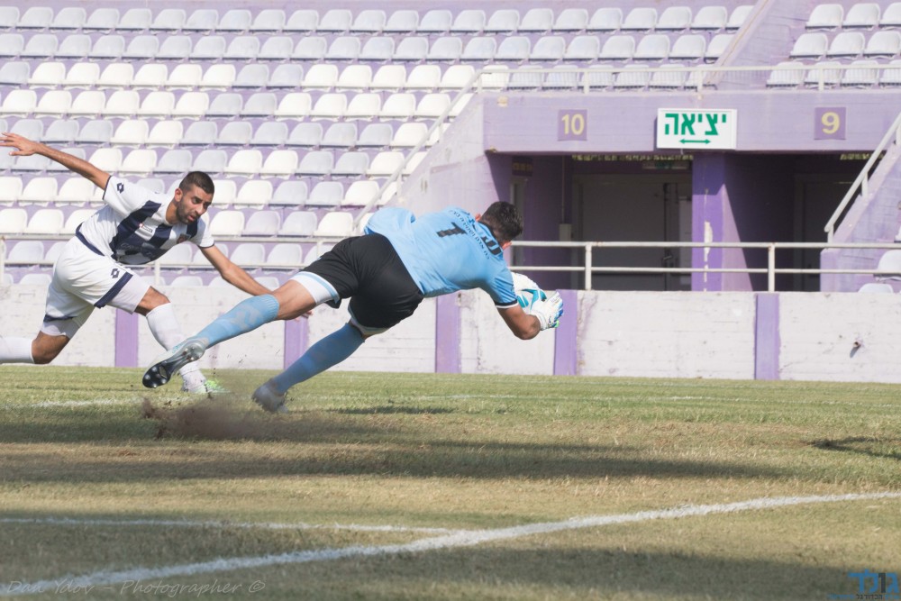 מועיין חלבי, שוער הוד השרון לא הצליח להציל את קבוצתו מול הקטר מכפר קאסם. צילום: דן יידוב