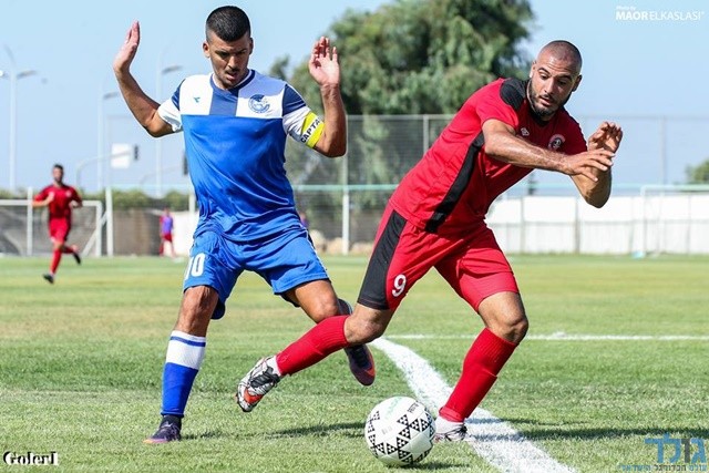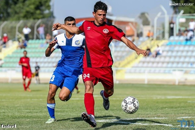 עבד גאברין מנסה להשתלט על הכדור מול יוחאי כהן (מאור אלקסלסי)