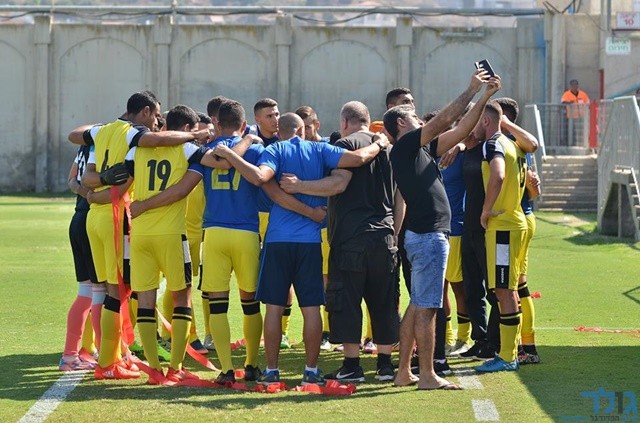 שחקני צור שלום לפני פתיחת המשחק (אבי רביבו)