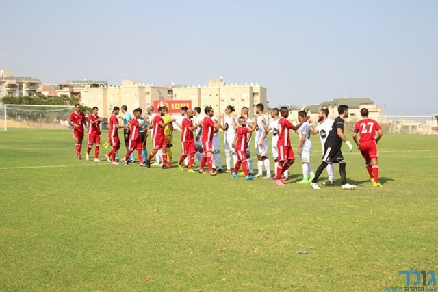 שחקני שתי הקבוצות לפני פתיחת המשחק (רועי סימוני)