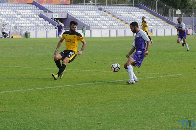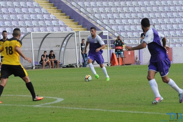 בר אהרוני מנסה לשמור על הכדור מול יהונתן זדה (איתן ידגר)