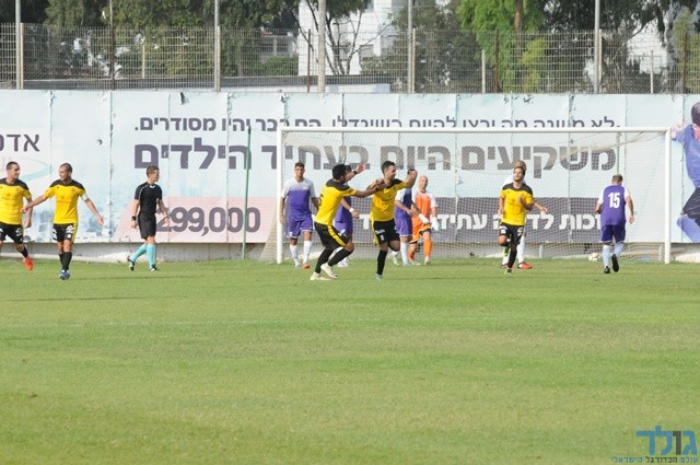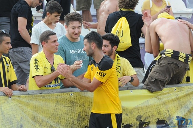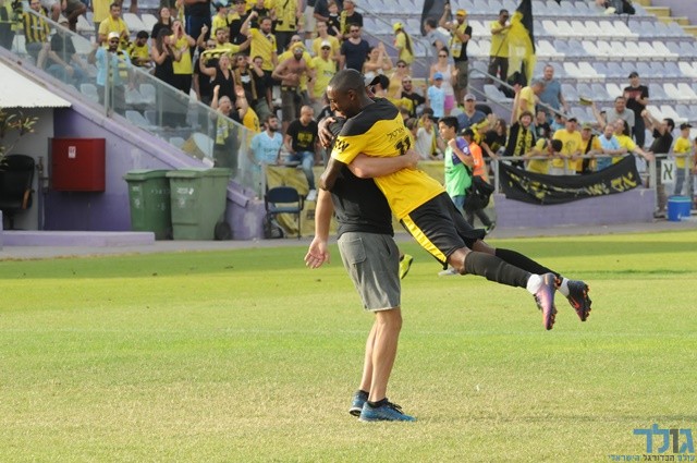 אביתר ברוכיאן כובש וחוגג עם קבוצתו ומאמנו (אתן ידגר)