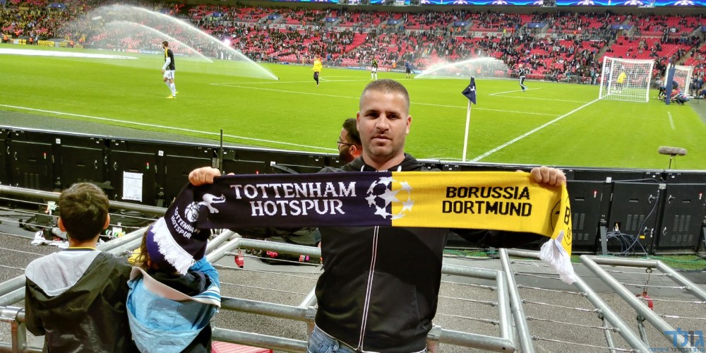 סוכן השחקנים הבכיר, אורן יחזקאל במשחק של טוטנהם נגד דורטמונד. האם הוא צופה באחד שחקנים שלו לעתיד?