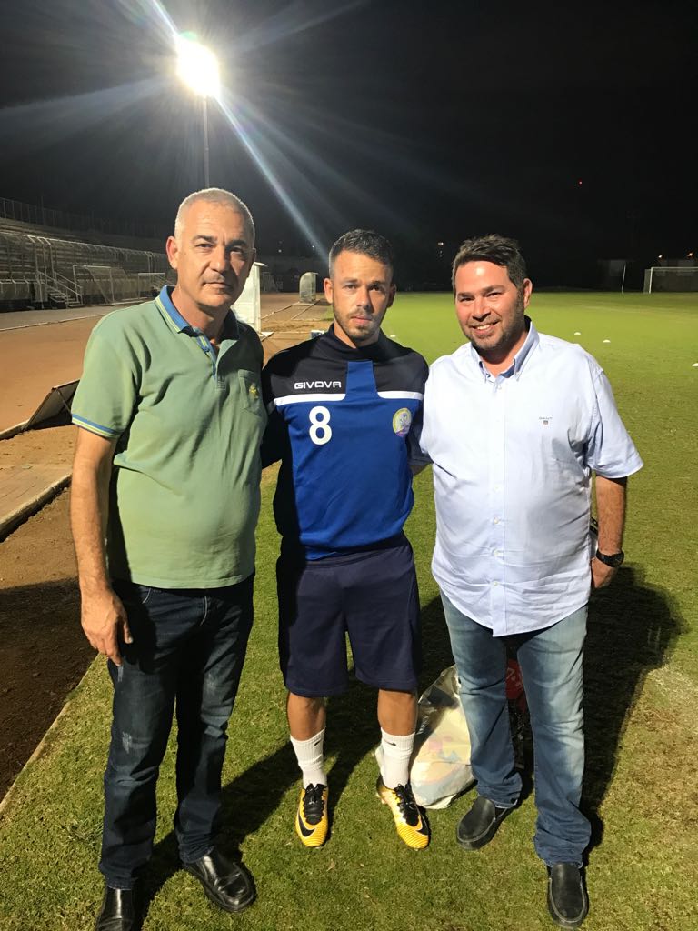 גל גניש עם סוכנו עידו קרן ונציג חולון לאחר החתימה על החוזה